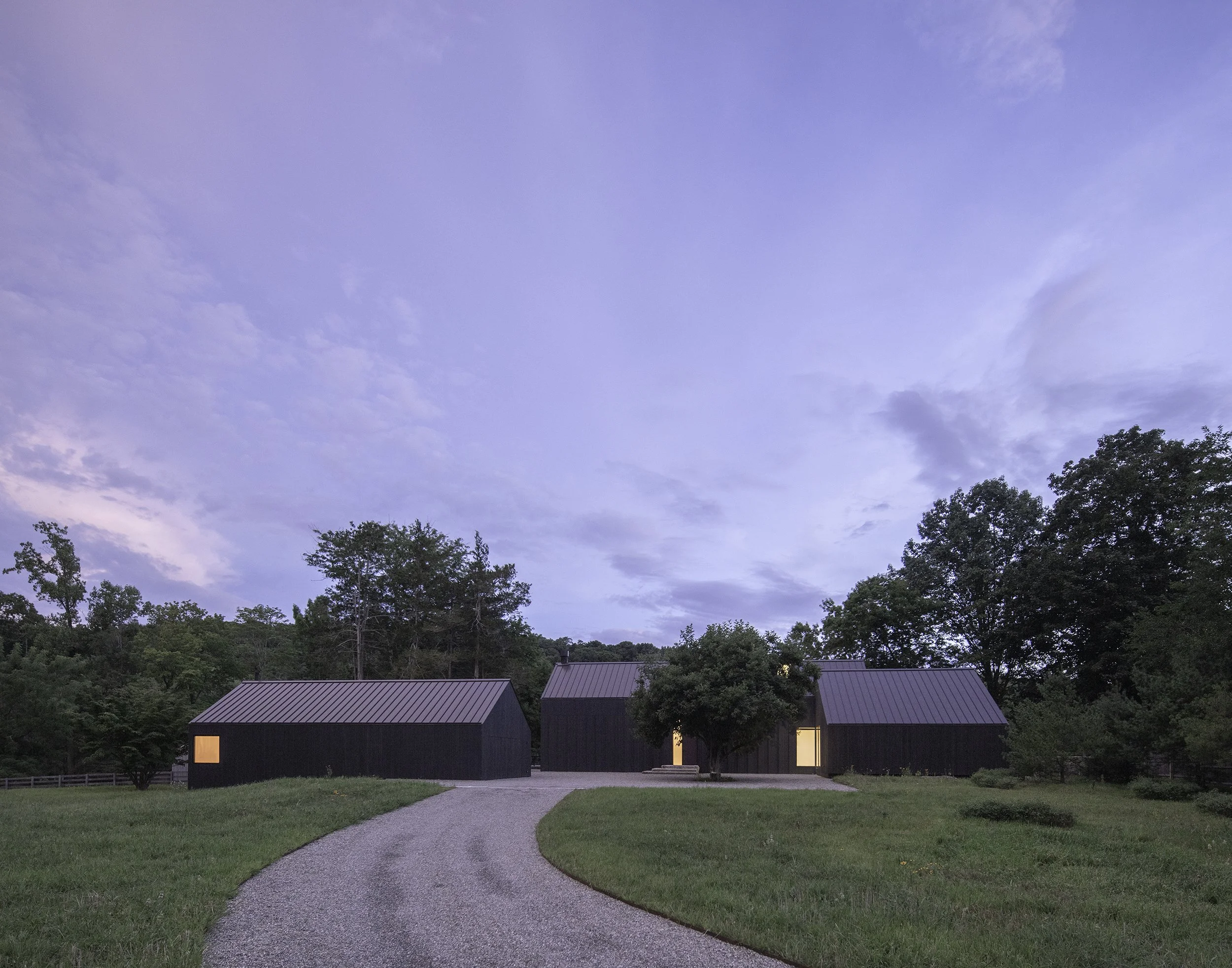 Studio Barn transforms an existing 1980s horse stable into a refined yet highly functional workspace for artists Kara Walker and Ari Marcopoulos. Tucked between dense woods and a natural meadow in rural Rhode Island, the structure offers a retreat for creative work, accessible from the property’s main house via a meditative walk through the surrounding meadow.